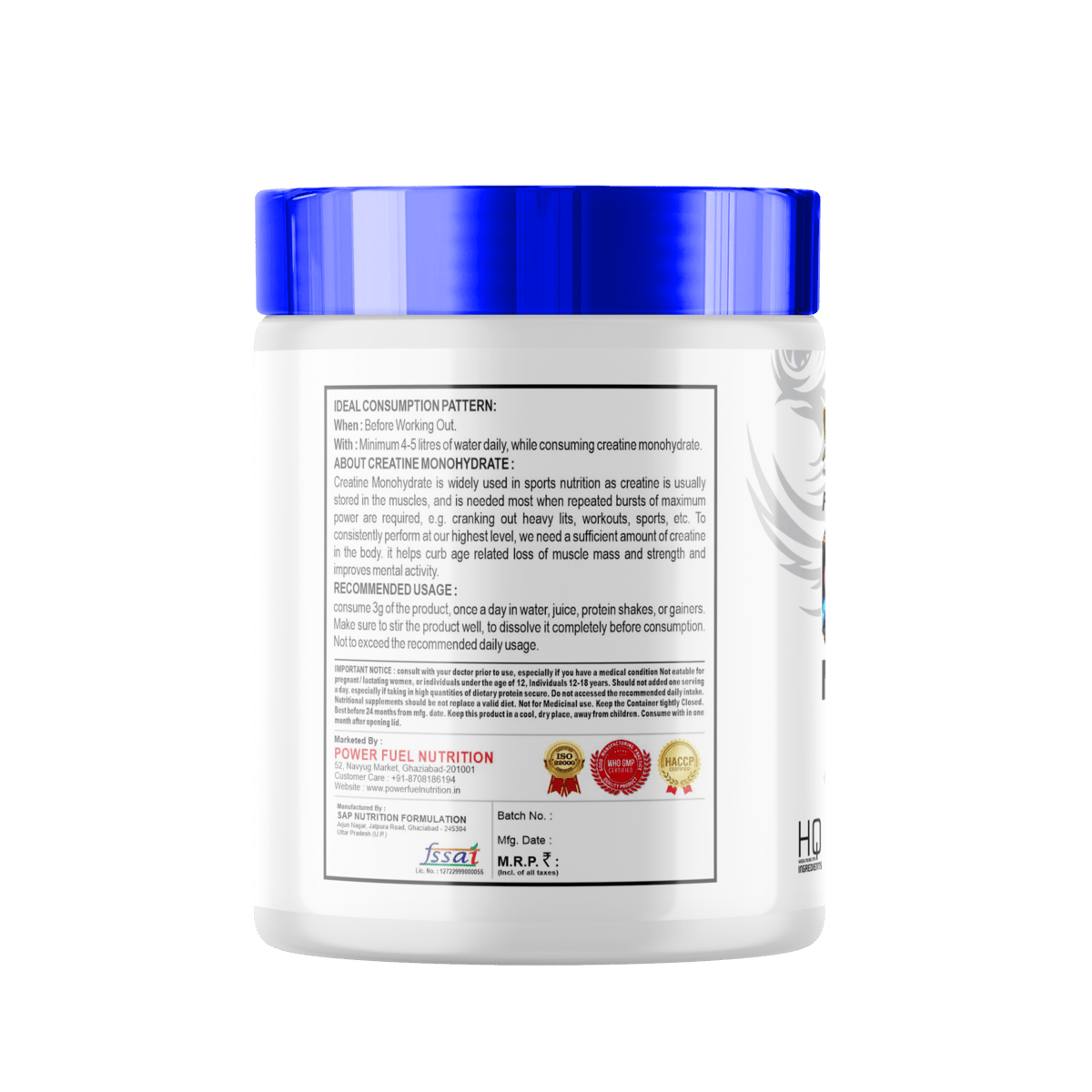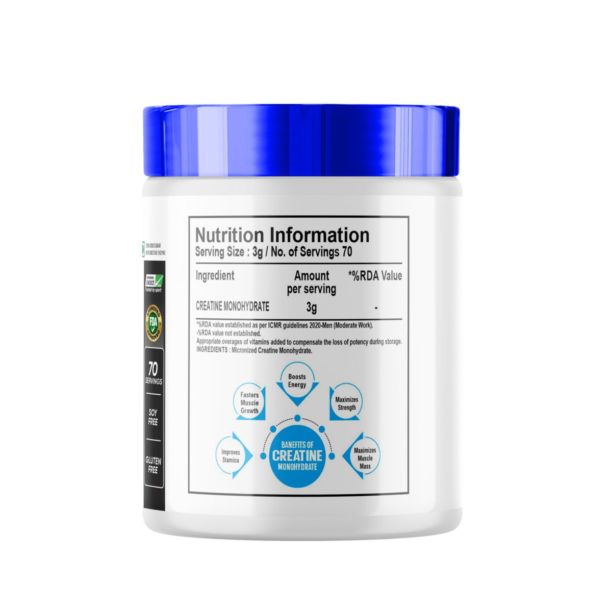 • Increased Muscle Mass: Creatine helps improve muscle growth by enhancing protein synthesis, promoting water retention in muscles (which makes them appear fuller), and boosting overall workout performance.